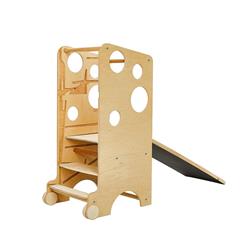 - Tour d'apprentissage, si possible 4 en 1 avec tableau noir, chaise table, toboggan, tour.